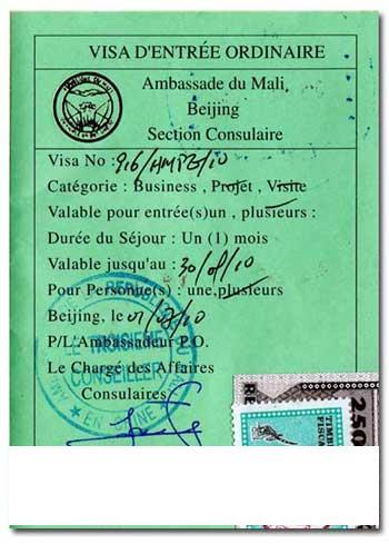 簽證類型:馬里商務(wù)簽證 1000元/人