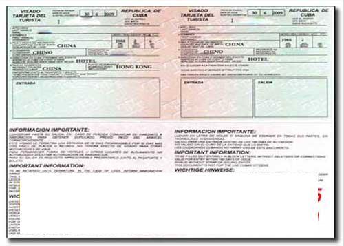 古巴旅游簽證申請表格